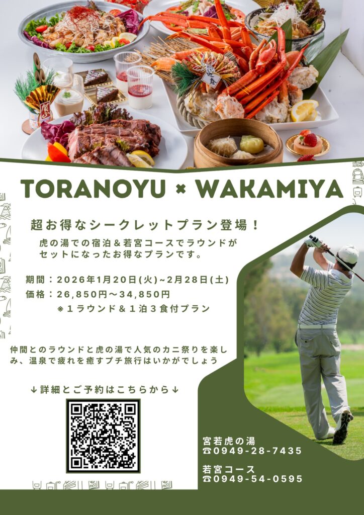 虎の湯での宿泊&若宮コースでラウンドがセットになったお得なプランです。